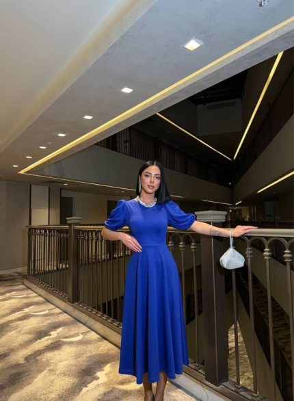 Lacivert Arka Ve Bel Ucu Gipeli Elbise