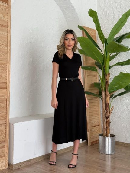 Kadın Kısa Kollu V Yaka Maxi Boy Elbise 124 Cm