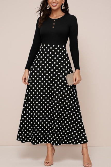 Kadın Uzun Kollu önü Düğmeli Viskon Bluz Eteği örme Maxi Krep Elbise