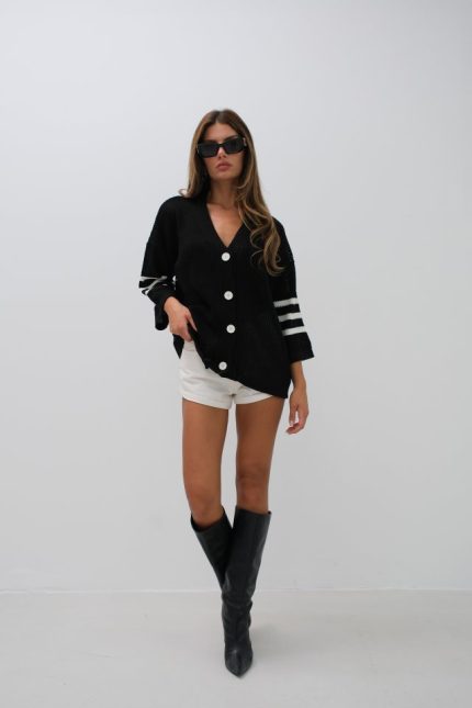 Kadın Uzun Kollu V Yakalı önden Düğmeli Kısa Triko Elbise