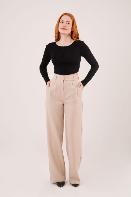Kadın Yüksek Bel İspanyol Paçalı Deri Pantolon