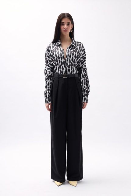 Kadın Uzun Kollu Yakadan Fermuarlı Viskon Bluz
