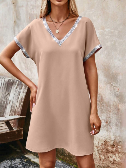 Kadın Kısa Kollu V Yakalı Desenli Süprem Elbise