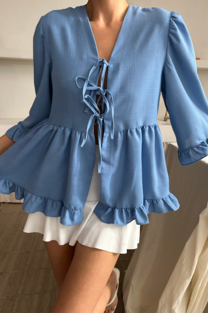 Kadın Omuzlardan Açık Boyundan Geçmeli Desenli Süprem Bluz