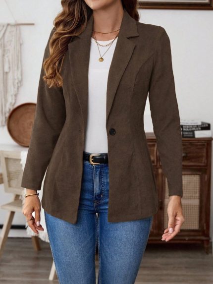 Kadın Uzun Kollu Yakalı Düğmeli Süet Mini Manto