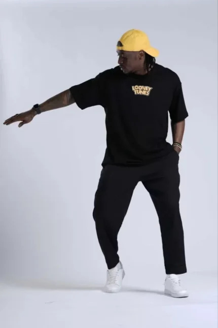 Unisex Bisiklet Yaka Baskılı Oversize T-Shirt – Siyah