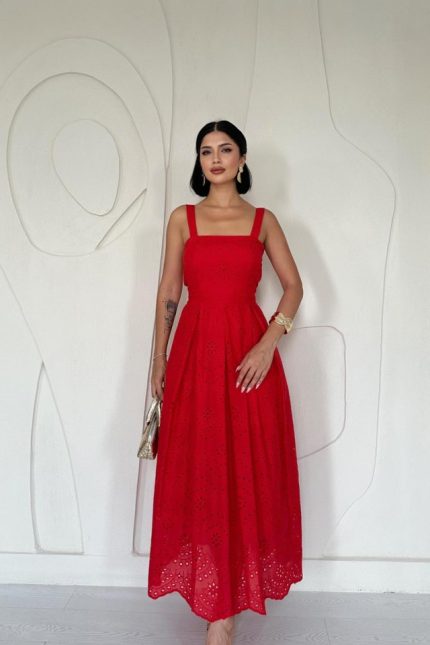Kadın Omuz çoklu Askılı önü Taş Işlemeli Balık Kesim Janjan Krep Maxi Boy Elbise