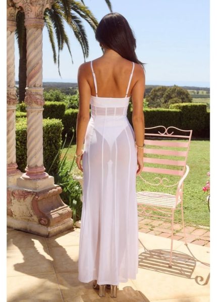 Kadın Halter Yaka Simli Kumaş Sırtı Bağcık Detay Prenses Elbise