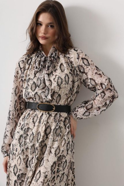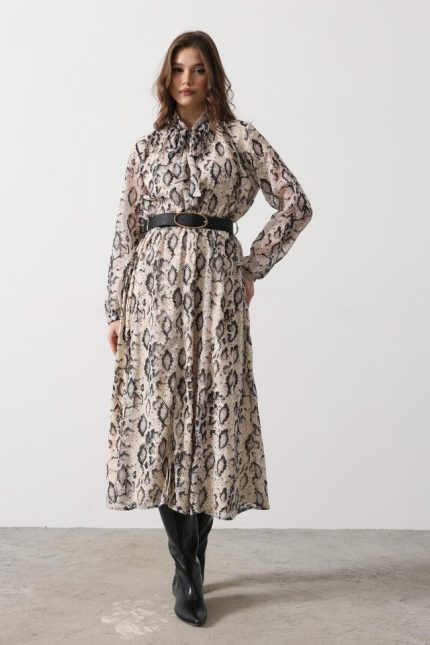 Beyaz Gömlek Yaka Bağlamalı Elbise