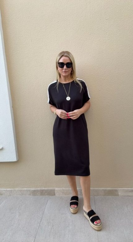 Kadın Kısa Kollu şerit Detay Midi Boy Elbise