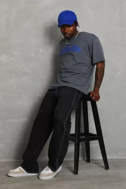 Unisex Oversize Baskılı Bisiklet Yaka T-Shirt – Füme