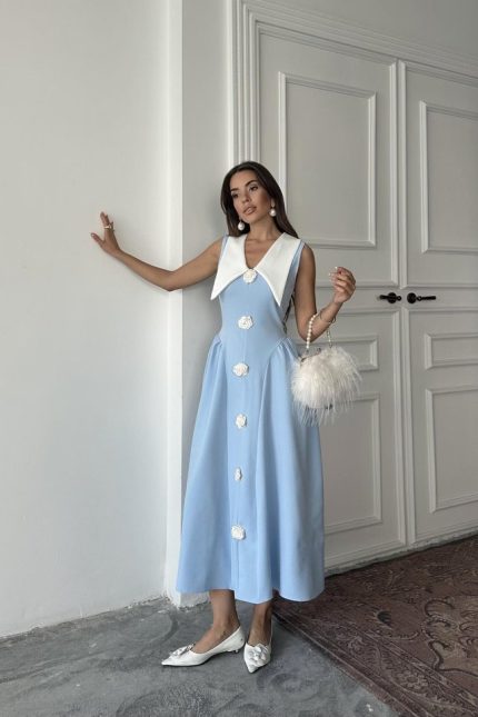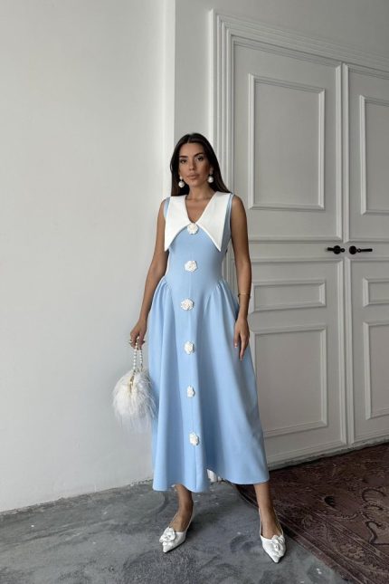 ₺700,00Mavi Gül Detaylı Atlas Elbise