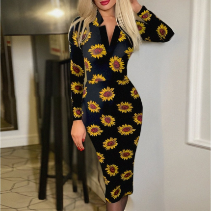 Kadın Uzun Kollu V Yaka Puantiyeli Krep Midi Boy Elbise