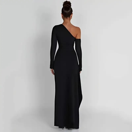 Kadın Tek Omuz Asimetrik Kesim Derin Yırtmaçlı Uzun Ithal Krep Elbise