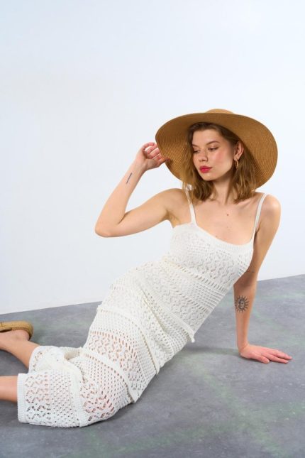 Kadın V Yaka Sırt Dekolte Detaylı Askılı Midi Boy Elbise