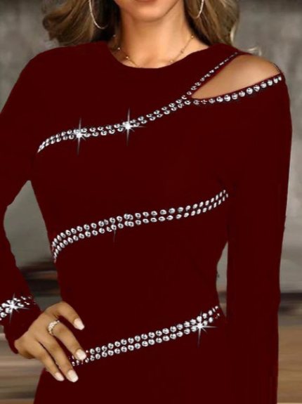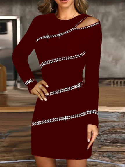 Kadın Uzun Kollu Omuz Pencere Detay Taş Işlemeli Dalgıç Mini Elbise