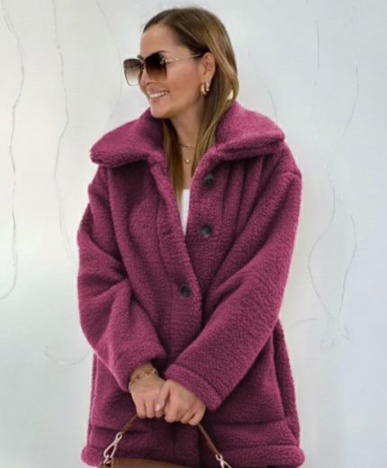 Kadın Uzun Kollu V Yakalı Salaş Midi Akrilik Elbise