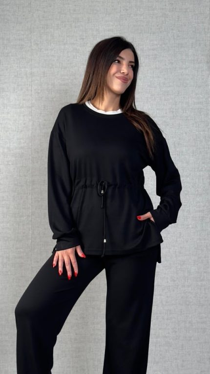 Kadın Uzun Kollu Yaka Ve Büzgü Detay Tunik Ve Pantolon Ikili Takım