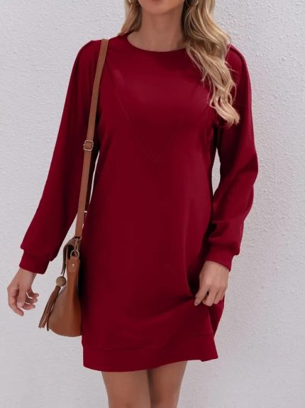 Kadın Uzun Kollu Bisiklet Yaka Iki Iplik Elbise
