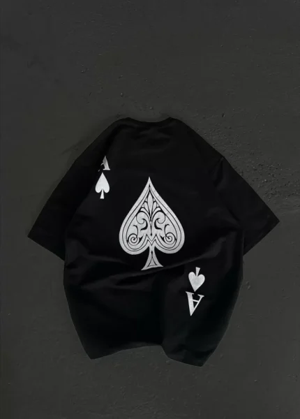 Unisex Bisiklet Yaka Baskılı Oversize T-Shirt – Siyah