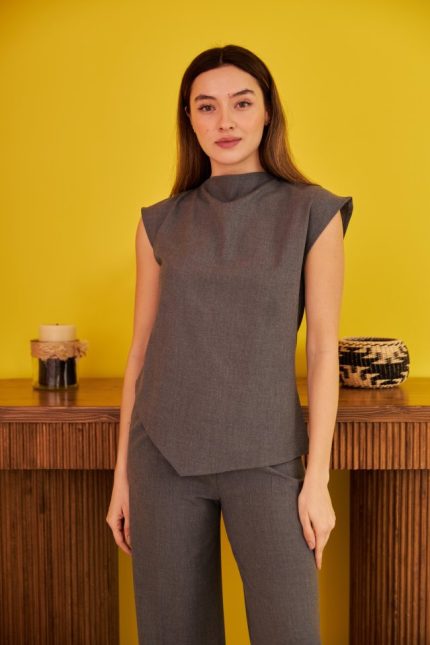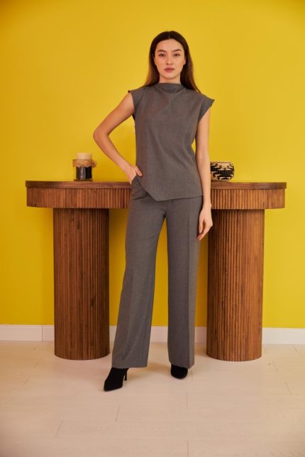 Asimetrik Bluz – Pantolon İkili Takım