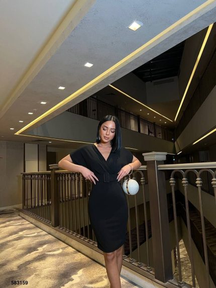 Kadın V Yaka önü Asansör Büzgü Detay Fırsat ürün Mini Elbise