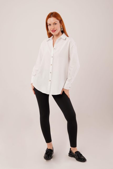 İnce Çizgi Detaylı Beyaz Gömlek