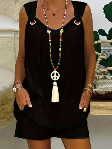 Kadın Kolsuz V Hakim Yaka Dantelli Janjan Krep Elbise