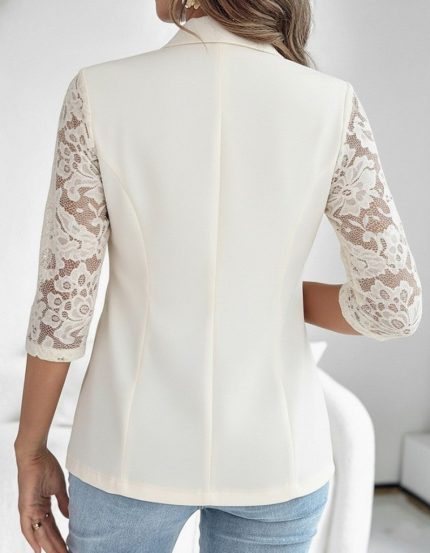 Kadın Uzun Kollu Truvakar Kol önden Düğmeli Cepli Dantelli Atlas Ceket