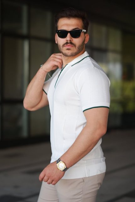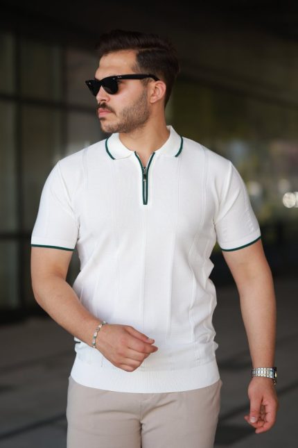 Erkek Yakası Fermuarlı Kısa Kollu T-shirt