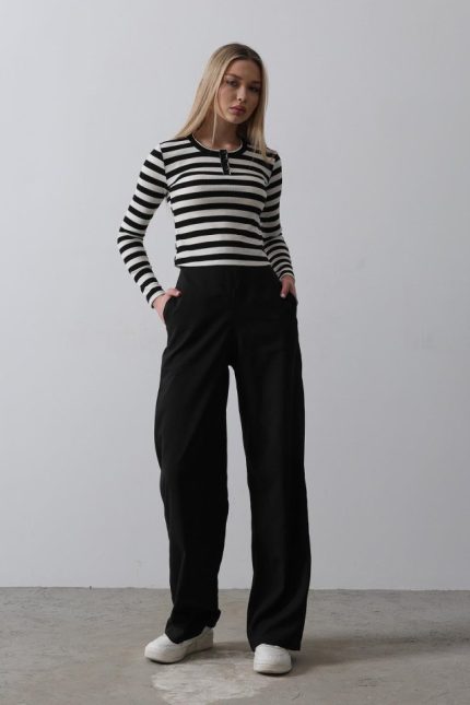 Kadın Uzun Kollu Bisiklet Yaka Desenli Viskon Iki Iplik Bluz
