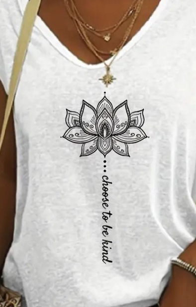 Kadın Kısa Kollu V Yaka önü Desenli Salaş Viskon Bluz