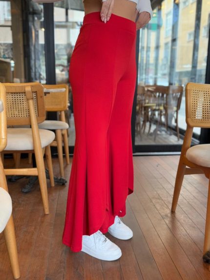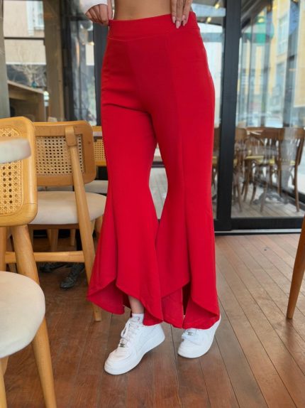 Kadın Yüksek Bel Paçaya Doğru Genişleyen Lazer çiçek Kesim Detaylı Ithal Krep Pantolon