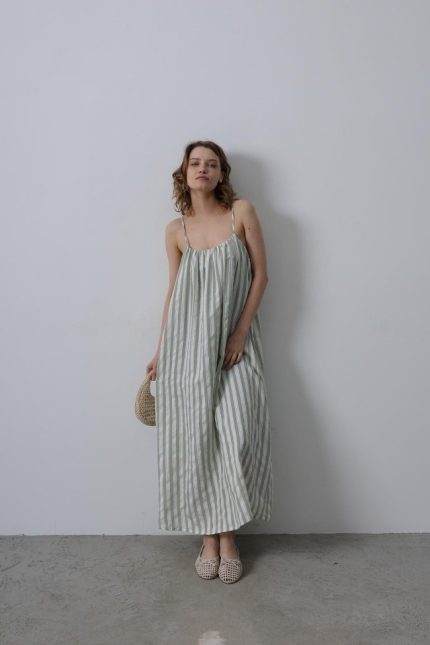 Kadın Uzun Kollubalıkçı Yaka Bürümcük Kumaş Kuşak Dahilkalem Elbise