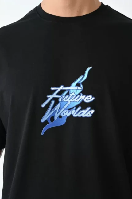 Baskılı Oversize Bisiklet Yaka T-shirt – Siyah