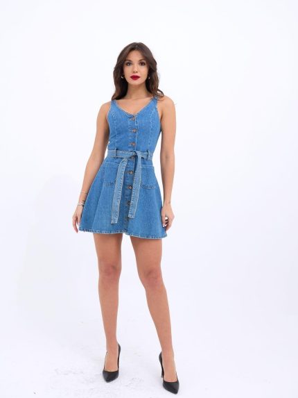 Kadın Viskon Pamuklu Kumaş Kol File , şerit Ve Cep Detaylı Elbise