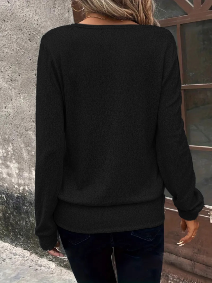 Kadın Uzun Kollu Kruvaze Yaka Kol Ve Etek Ucu Manşet Detay Yumoş Bluz