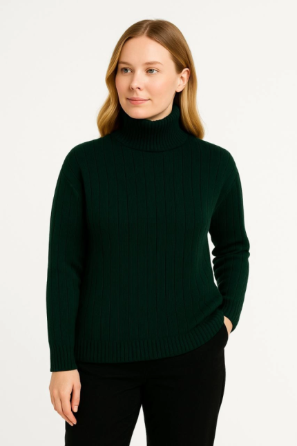 Balıkcı Yaka Bağazlı Triko Kazak Pamuklu Kalın Fitilli Dokuma – Mint Yeşili