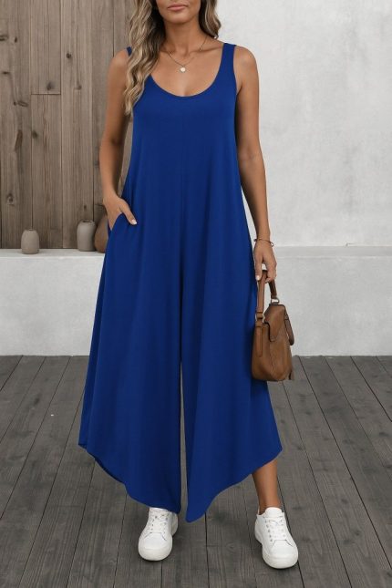 Kadın Askılı Yuvarlak Yaka Cepli Salaş Uzun Viskon Tulum
