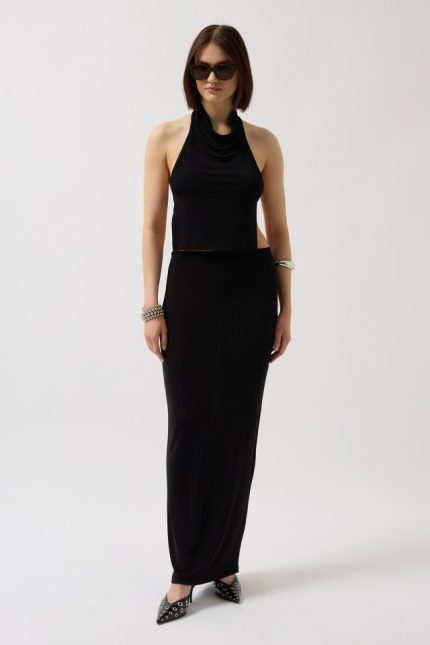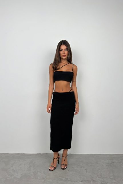 Keten Haki̇m Yaka Kolsuz Gömlek Etek Takim