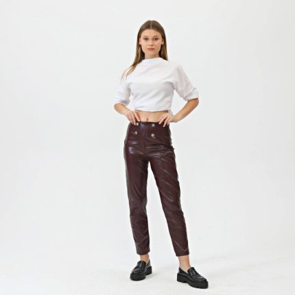 Orijinal fiyat: ₺888,65.₺799,78Şu andaki fiyat: ₺799,78.Düğmeli̇ Yan Fermuarli Deri̇ Pantolon