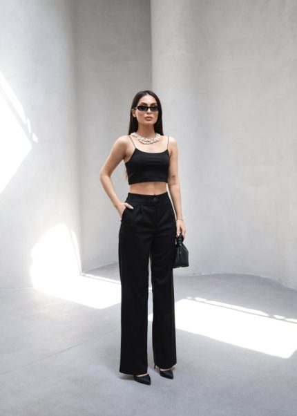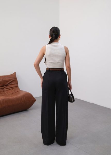 Cırtlı Fermuarlı Palazzo Pantolon -Siyah