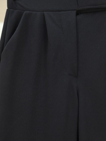Cırtlı Fermuarlı Palazzo Pantolon -Siyah