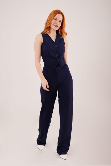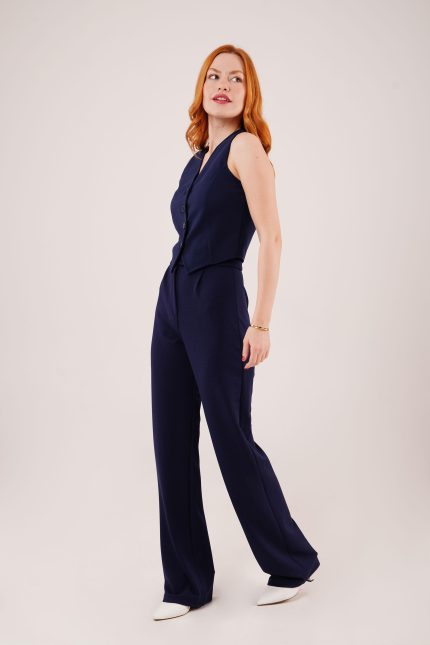 Cırt Kapama Detaylı Lacivert Pantolon