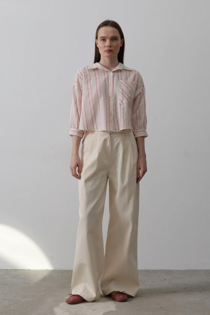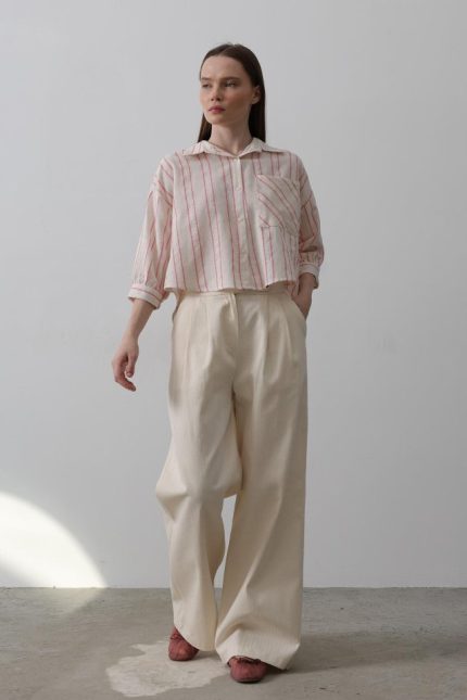 Çift Pileli Palazzo Pantolon – Natür