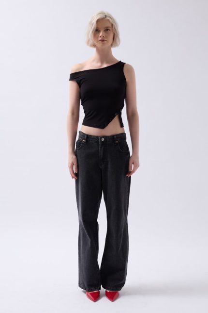 Kadın Siyah V Yaka Uzun Kollu Bluz