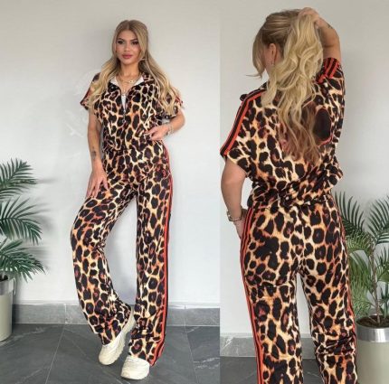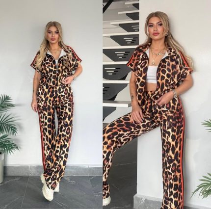 Orijinal fiyat: ₺517,40.₺465,66Şu andaki fiyat: ₺465,66.Kadın Dalgıç Kumaş Dijital Leopar Baskılı şerit Detaylı Takım