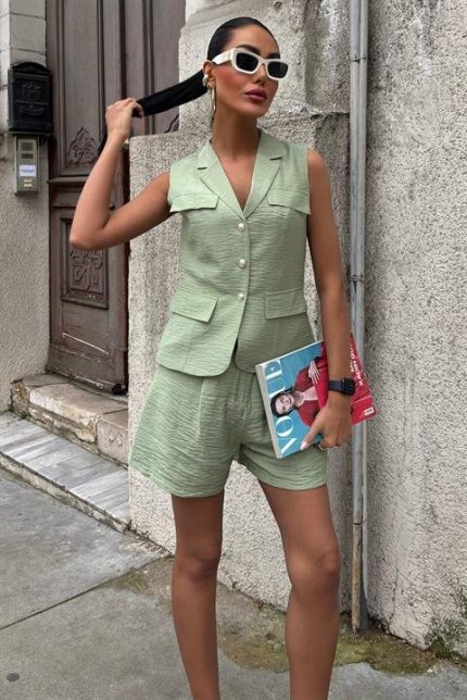 Arkası Bağcıklı Yelek Plazza Pantolon Modal Takım 10202-08