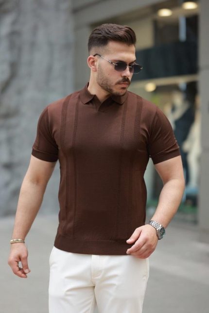Erkek Kısa Kollu Bisiklet Yaka çizgili Triko Tişört