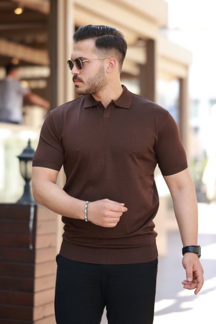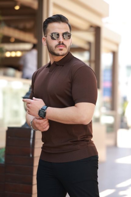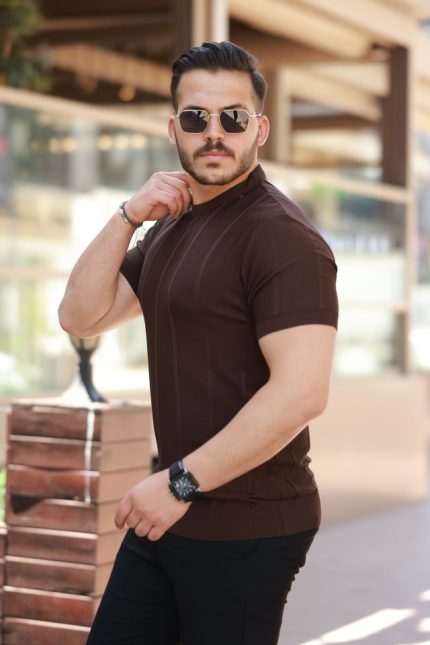 Erkek Fermuarlı Yakalı Kısa Kollu Tshirt